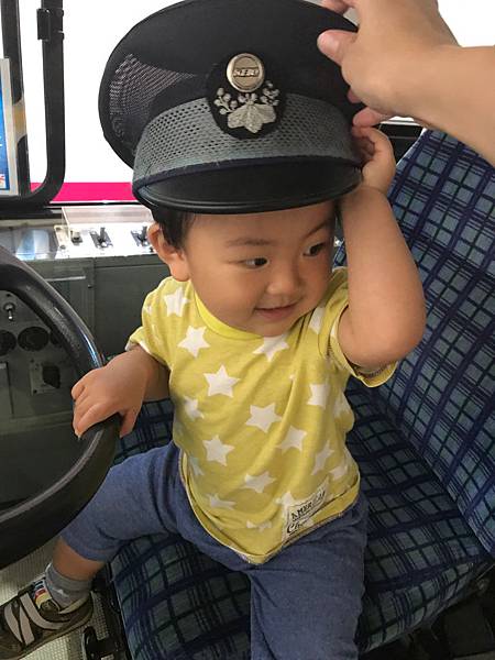 接著是公車,可以坐上駕駛座戴上帽子當小小駕駛 XD
