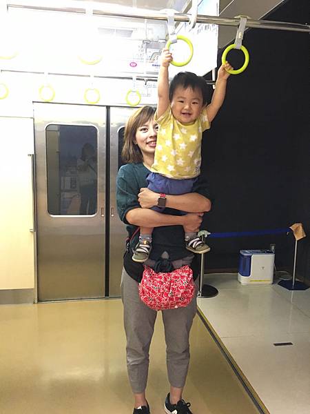 車廂內自由參觀,就讓蛋寶抓抓他最愛的吊環😆